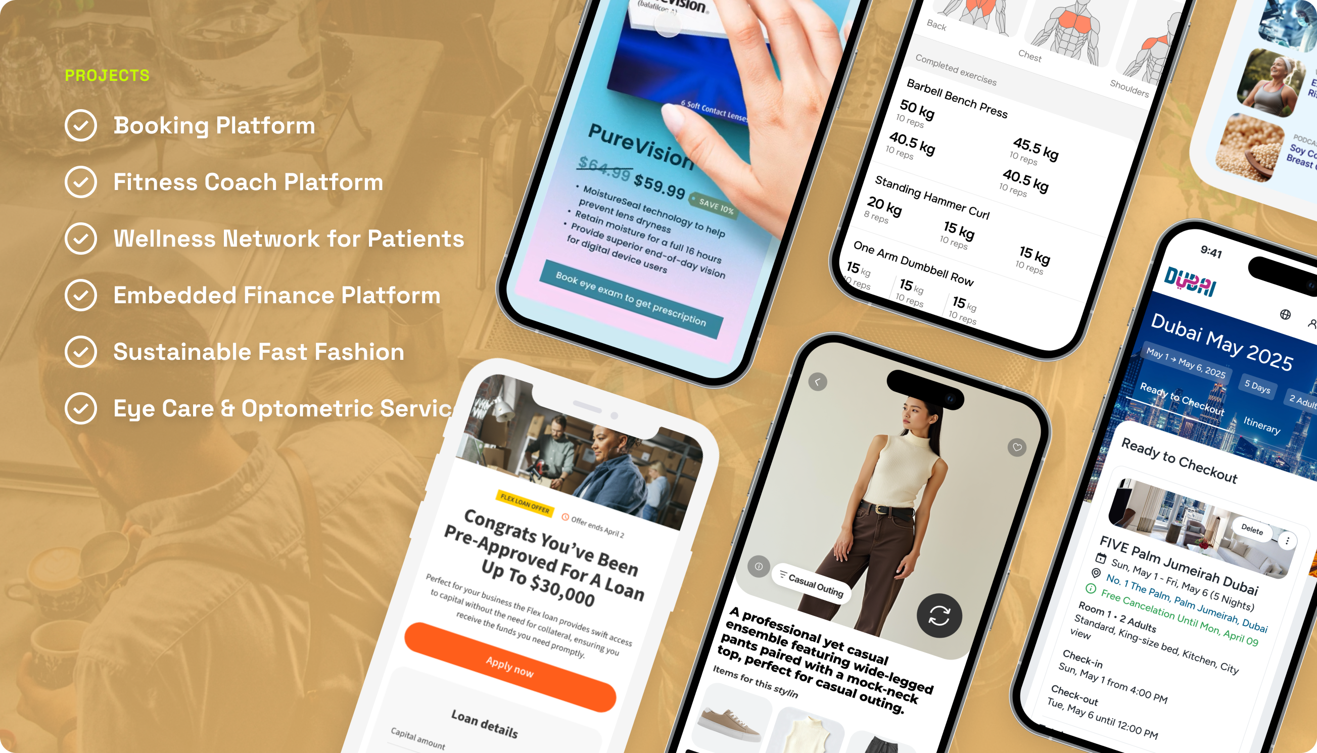I partner with startups and corporate venture teams from concept to launch, building products across fintech, travel tech, wellness, and fashion.